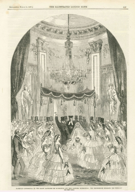 (Left) Marriage Ceremonial of the Baron Alphonse de Rothschild and Miss Leonora Rothschild: the Bridegroom Breaking the Wine Cup. Their wedding at Gunnersbury Park in 1857 was the social event of the season.